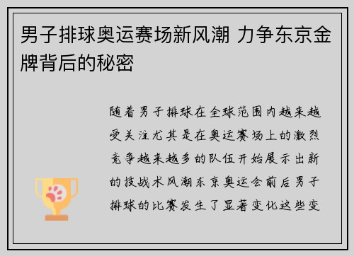 随着奥运会的临近,各国代表队纷纷进入了热身赛阶段。此次奥运会热身赛不仅是各国运动员调整状态的关键时刻,也是对各队备战情况的重要检验。全球各大体育强国的队伍纷纷亮相,激烈的比赛和多样的策略展示了他们为奥运会做出的充分准备。各国队伍的表现成为了各大媒体和体育迷关注的焦点,不仅关乎赛场上的胜负,也为各国运动员提供了一个宝贵的调试平台。本文将从多方面详细分析奥运会热身赛的激烈情况,并探讨各国队伍备战状态。...